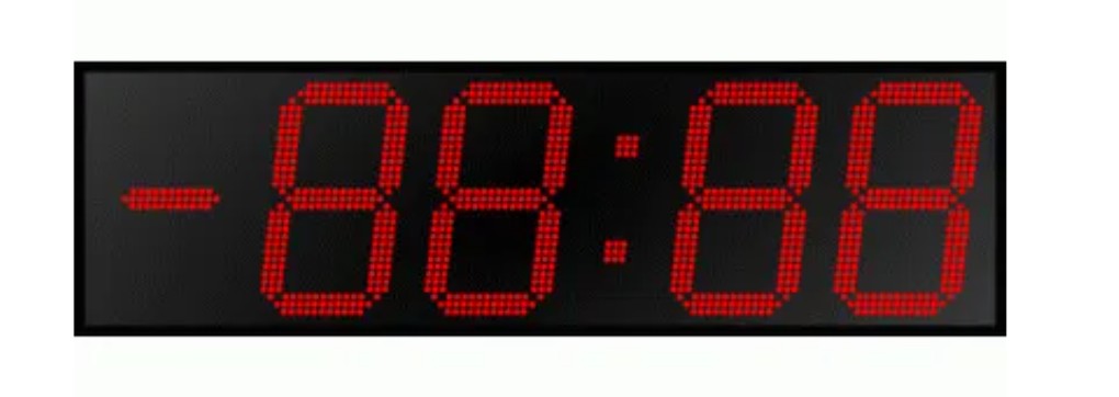 Дисплей часов создан на основе точечных светодиодов повышенной яркости диаметром 5 мм каждый. В данной модификации на дисплее размещены шесть (6) знаков высотой сто пятьдесят (150) мм. Цвет светодиодов на выбор заказчика - красный или зеленый. Угол обзора в горизонтальной плоскости составляет 120°, дальность прямой видимости до 60 метров. Встроенный датчик температуры, помимо отображения времени/даты прибор по умолчанию демонстрирует и температуру окружающей среды.