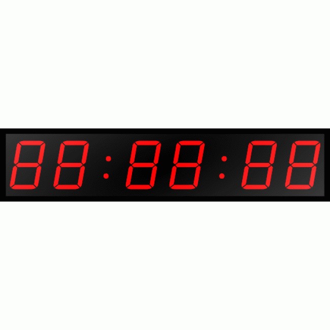 Дисплей часов создан на основе семисегментных светодиодных индикаторов. В данной модификации на дисплее размещены шесть (6) разрядов высотой сто (100) мм. Цвет светодиодов на выбор заказчика - красный или зеленый. Угол обзора в горизонтальной плоскости составляет 120°, дальность прямой видимости до 30 метров.