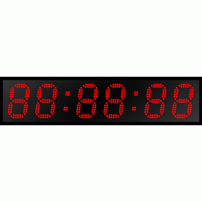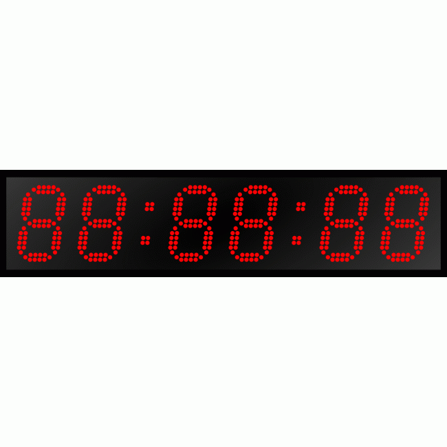 Дисплей часов создан на основе точечных светодиодов диаметром 5 мм каждый, расположенных в два ряда. В данной модификации на дисплее размещены шесть (6) разрядов высотой сто тридцать (130) мм. Цвет светодиодов на выбор заказчика - красный или зеленый. Угол обзора в горизонтальной плоскости составляет 120°, дальность прямой видимости до 40 метров.