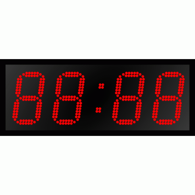 Дисплей часов создан на основе точечных светодиодов диаметром 5 мм каждый, расположенных в два ряда. В данной модификации на дисплее размещены четыре (4) знака высотой сто восемьдесят (180) мм. Цвет светодиодов на выбор заказчика - красный или зеленый. Угол обзора в горизонтальной плоскости составляет 120°, дальность прямой видимости до 55 метров.