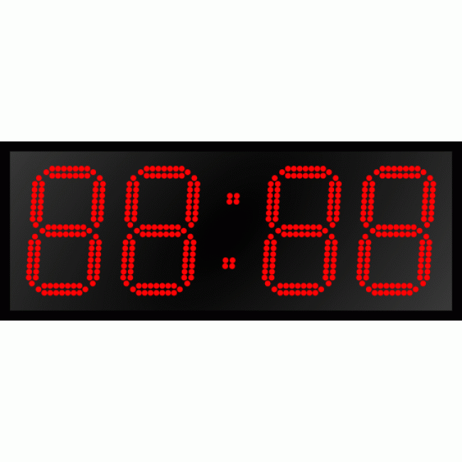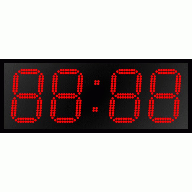 Дисплей часов создан на основе точечных светодиодов диаметром 5 мм каждый, расположенных в два ряда. В данной модификации на дисплее размещены четыре (4) знака высотой двести десять (210) мм. Цвет светодиодов на выбор заказчика - красный или зеленый. Угол обзора в горизонтальной плоскости составляет 120°, дальность прямой видимости до 60 метров.