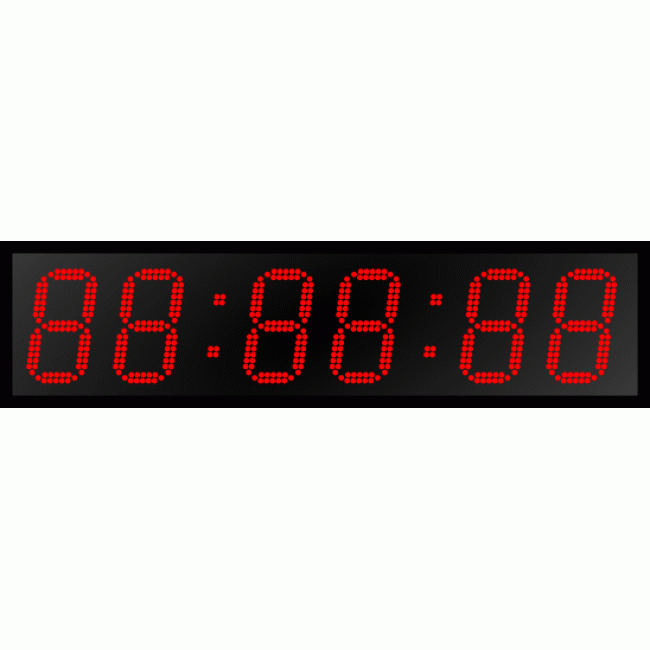 Дисплей часов создан на основе точечных светодиодов диаметром 5 мм каждый, расположенных в два ряда. В данной модификации на дисплее размещены шесть (6) разрядов высотой двести десять (210) мм. Цвет светодиодов на выбор заказчика - красный или зеленый. Угол обзора в горизонтальной плоскости составляет 120°, дальность прямой видимости до 60 метров.