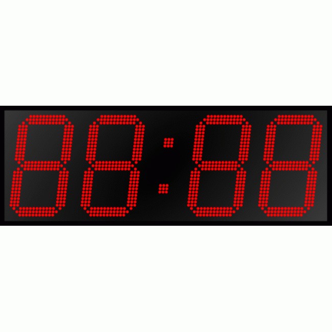 Дисплей часов создан на основе точечных светодиодов диаметром 5 мм каждый, расположенных в три ряда. В данной модификации на дисплее размещены четыре (4) знака высотой триста пятьдесят (350) мм. Цвет светодиодов на выбор заказчика - красный или зеленый. Угол обзора в горизонтальной плоскости составляет 120°, дальность прямой видимости до 120 метров.