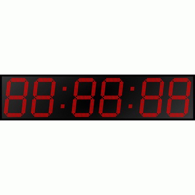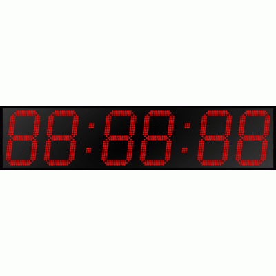 Дисплей часов создан на основе точечных светодиодов диаметром 5 мм каждый, расположенных в три ряда. В данной модификации на дисплее размещены шесть (6) знаков высотой триста пятьдесят (350) мм. Цвет светодиодов на выбор заказчика - красный или зеленый. Угол обзора в горизонтальной плоскости составляет 120°, дальность прямой видимости до 120 метров.