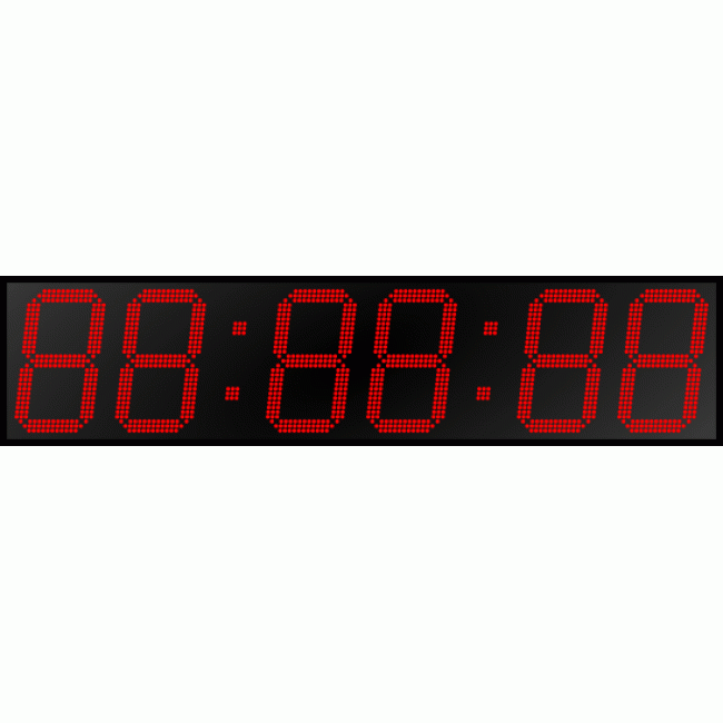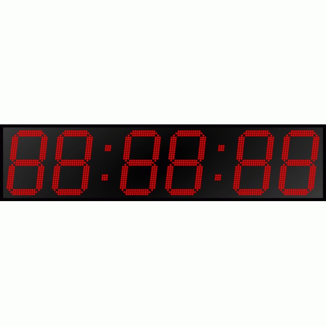 Дисплей часов создан на основе точечных светодиодов диаметром 5 мм каждый, расположенных в три ряда. В данной модификации на дисплее размещены шесть (6) разрядов высотой триста пятьдесят (350) мм. Цвет светодиодов на выбор заказчика - красный или зеленый. Угол обзора в горизонтальной плоскости составляет 120°, дальность прямой видимости до 120 метров.