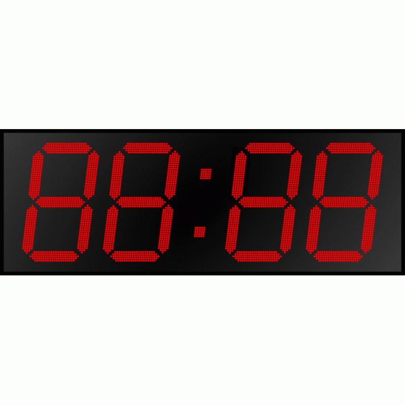 Дисплей часов создан на основе точечных светодиодов диаметром 5 мм каждый, расположенных в пять рядов. В данной модификации на дисплее размещены четыре (4) знака высотой пятьсот (500) мм. Цвет светодиодов на выбор заказчика - красный или зеленый. Угол обзора в горизонтальной плоскости составляет 120°, дальность прямой видимости до 200 метров.