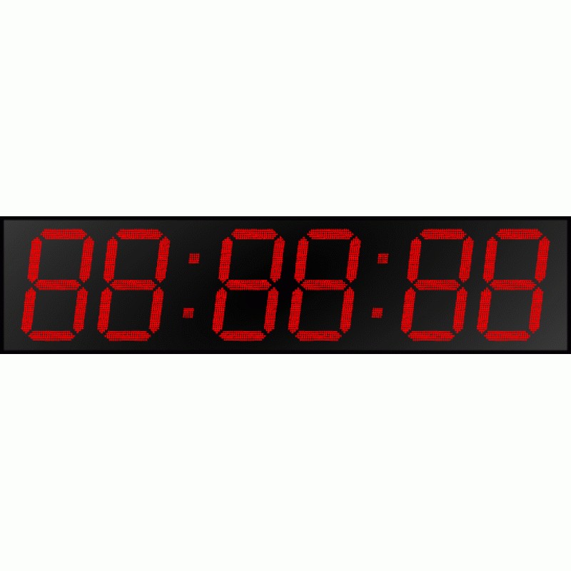 Дисплей часов создан на основе точечных светодиодов диаметром 5 мм каждый, расположенных в пять рядов. В данной модификации на дисплее размещены шесть (6) знаков высотой пятьсот (500) мм. Цвет светодиодов на выбор заказчика - красный или зеленый. Угол обзора в горизонтальной плоскости составляет 120°, дальность прямой видимости до 200 метров.