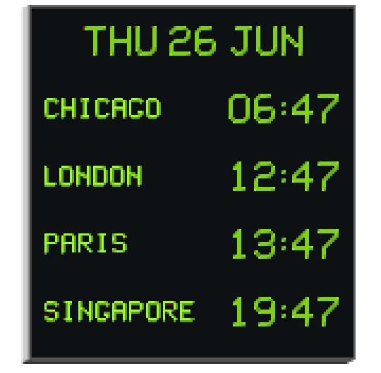 Предназначены для использования в составе систем часофикации или как автономные часы. Модель имеет возможность внешней синхронизации как через NTP сервер, так и через w482, MOBALine, IRIG-B. Такая функциональность очень удобна в использовании и предоставляет самые точные показания времени. Модель отображает на табло дату и текущее время для 4 регионов.