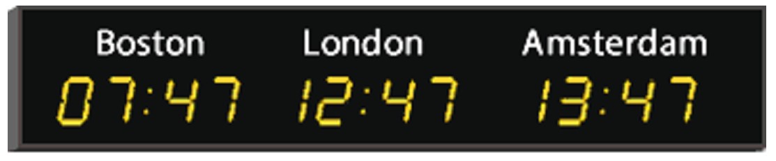 Предназначены для использования в составе систем часофикации или как автономные часы. Модель предназначена для внешней синхронизации через NTP сервер. Такая функциональность очень удобна в использовании и предоставляет самые точные показания времени. Модель показывает текущее время для трех регионов.