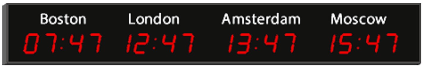 Предназначены для использования в составе систем часофикации или как автономные часы. Модель предназначена для внешней синхронизации через NTP сервер. Такая функциональность очень удобна в использовании и предоставляет самые точные показания времени. Модель показывает текущее время для четырех регионов.
