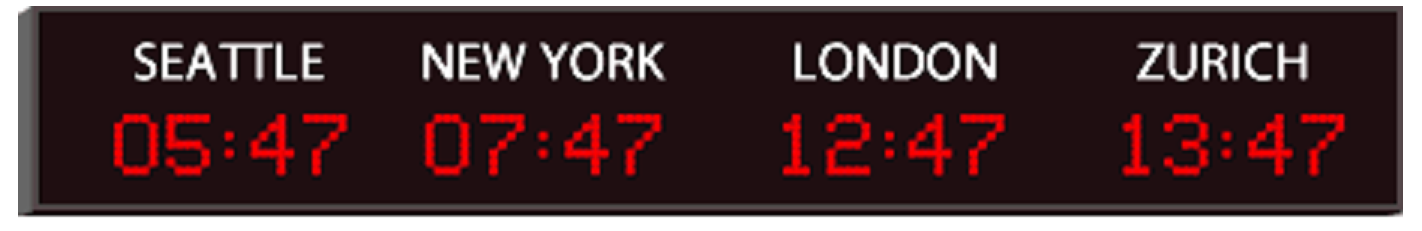 Предназначены для использования в составе систем часофикации или как автономные часы. Модель предназначена для внешней синхронизации через NTP сервер. Такая функциональность очень удобна в использовании и предоставляет самые точные показания времени. Модель показывает текущее время для четырех регионов.