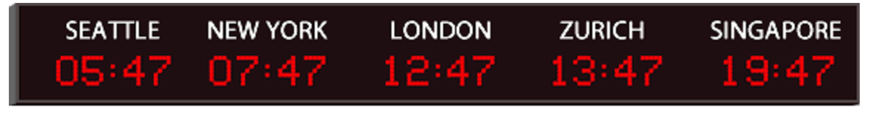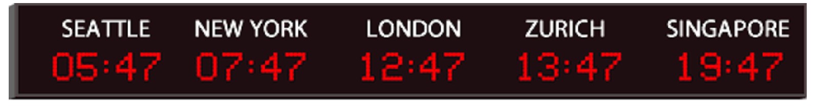 Предназначены для использования в составе систем часофикации или как автономные часы. Модель предназначена для внешней синхронизации через NTP сервер. Такая функциональность очень удобна в использовании и предоставляет самые точные показания времени. Модель показывает текущее время для пяти регионов.